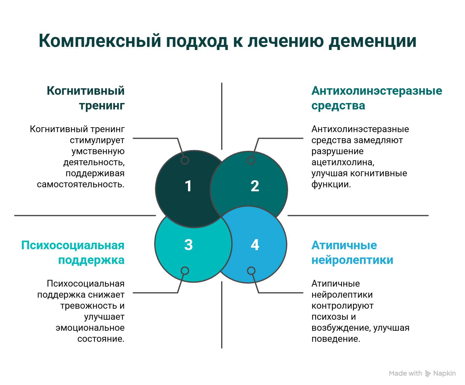 Всесторонний подход, включающий медикаментозное лечение, психологическую и социальную поддержку, участие семьи, – это ключ к тому, чтобы человек с деменцией мог дольше сохранять личность, общение, чувство собственного достоинства.